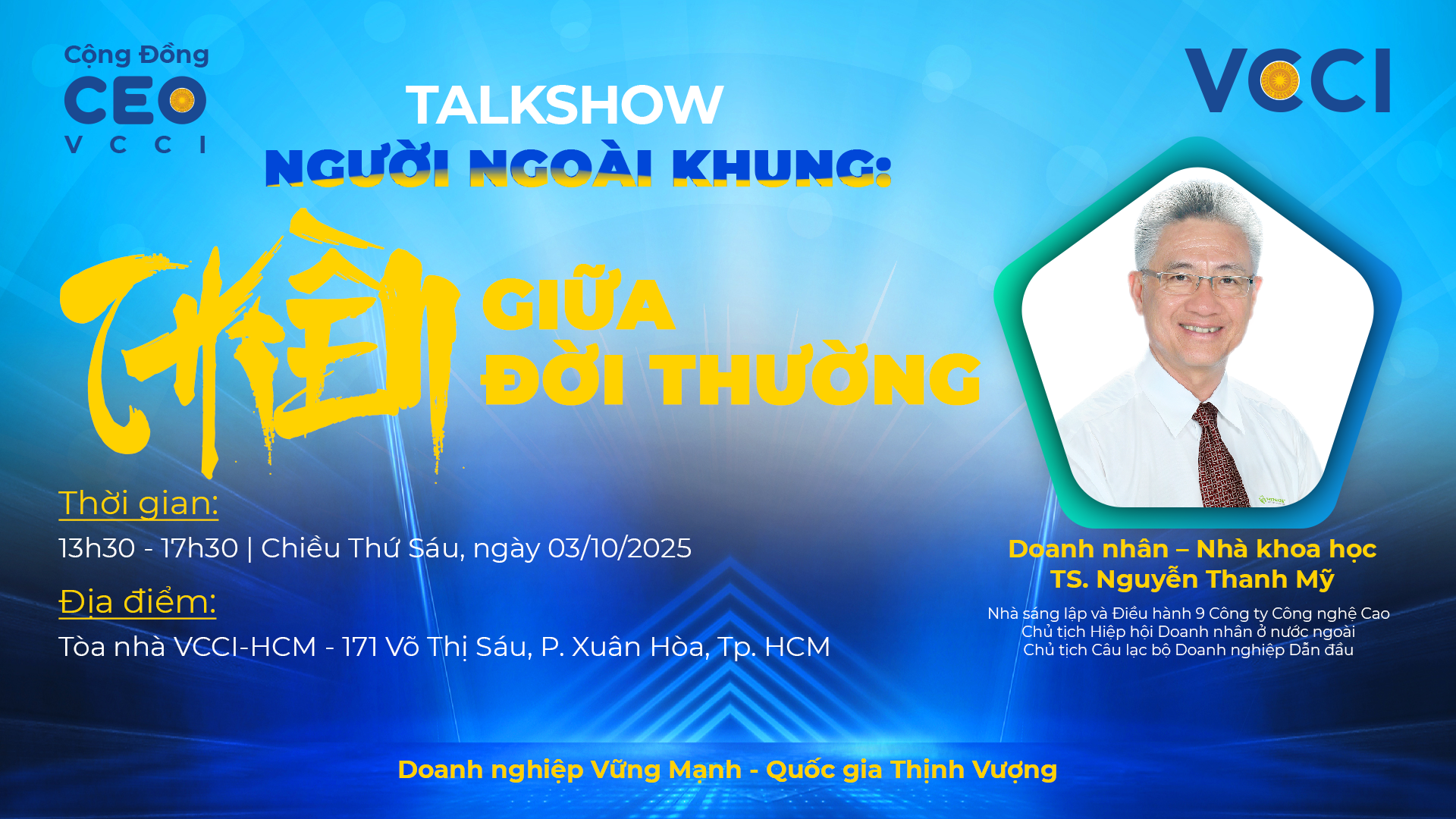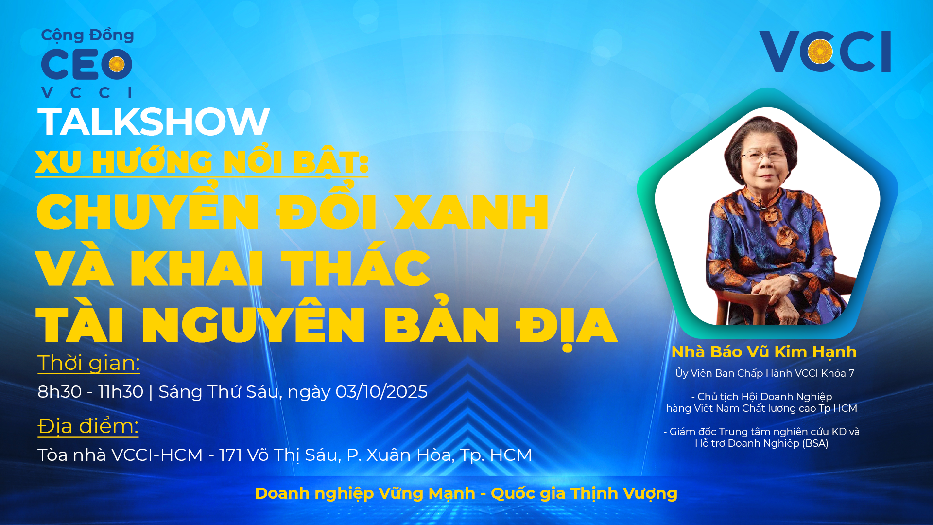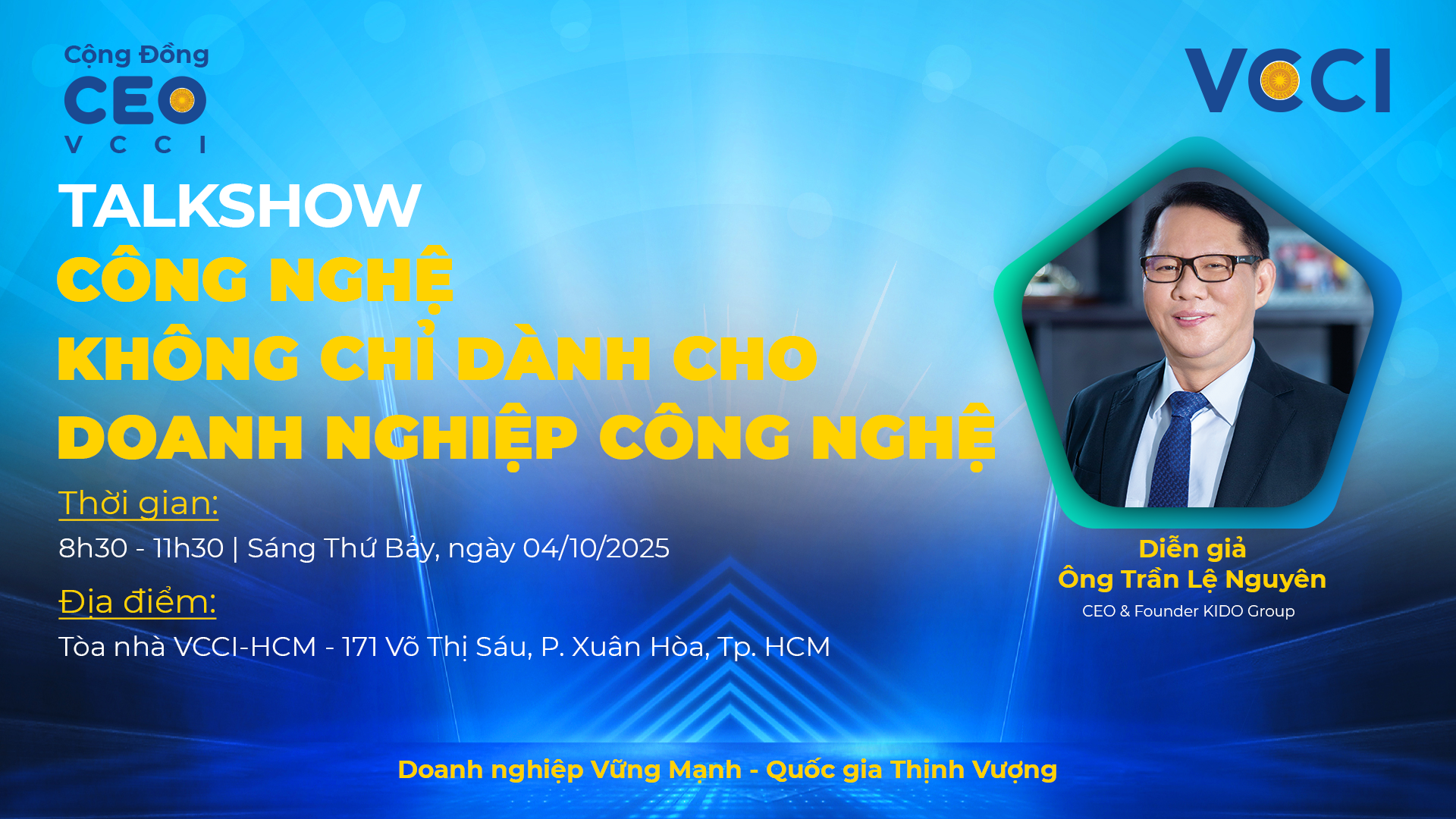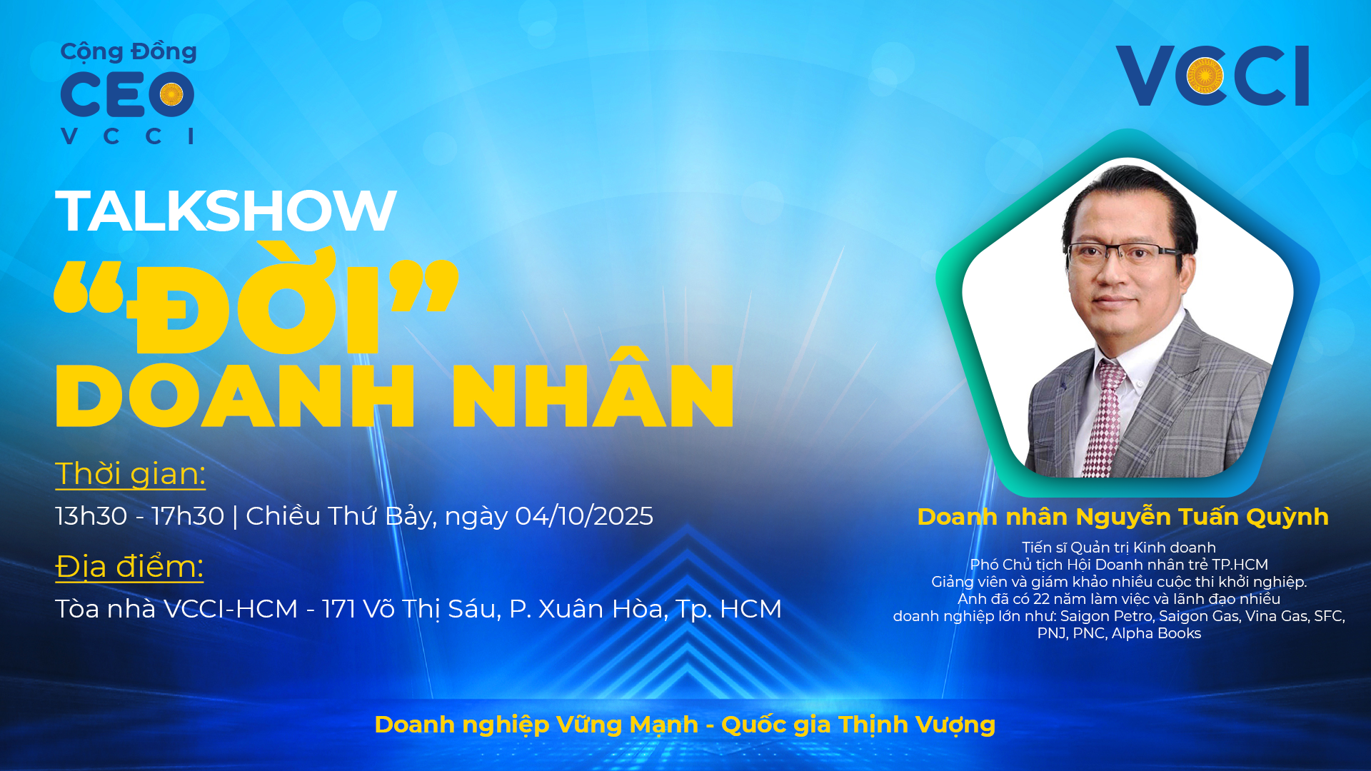 VCCI-HCM trân trọng kính mời Anh/Chị tham dự chuỗi Talkshow đặc biệt dành cho thế hệ doanh nhân với những chủ đề hấp dẫn và các diễn giả uy tín. Đây là cơ hội để kết nối, học hỏi và truyền cảm hứng phát triển bền vững trong kinh doanh.