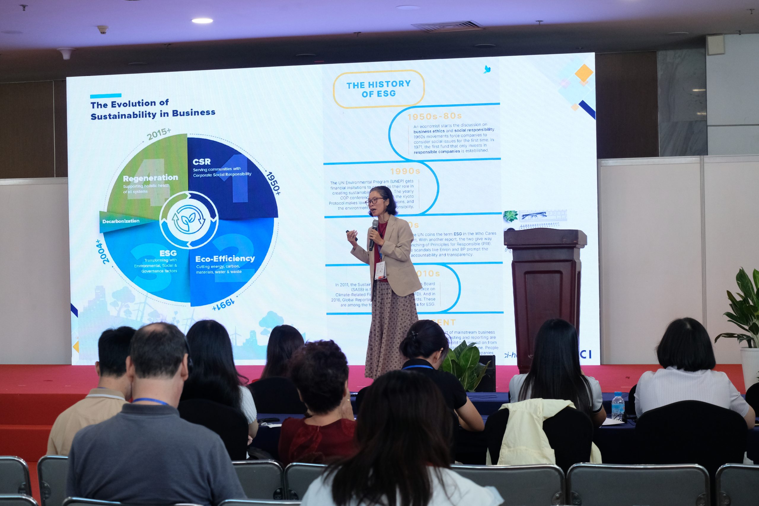 Bà Trần Như Trang – Chuyên gia quốc tế & Đại diện quốc gia, Chương trình Xúc tiến Nhập khẩu Thụy Sĩ (SIPPO) đã chia sẻ về tầm quan trọng của báo cáo bền vững trong việc tiếp cận thị trường quốc tế.