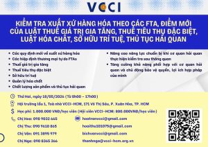 Nhằm hỗ trợ cộng đồng doanh nghiệp cập nhật các quy định mới về xuất xứ hàng hóa, các hiệp định thương mại tự do (FTAs), thuế giá trị gia tăng, thuế tiêu thụ đặc biệt, sở hữu trí tuệ,