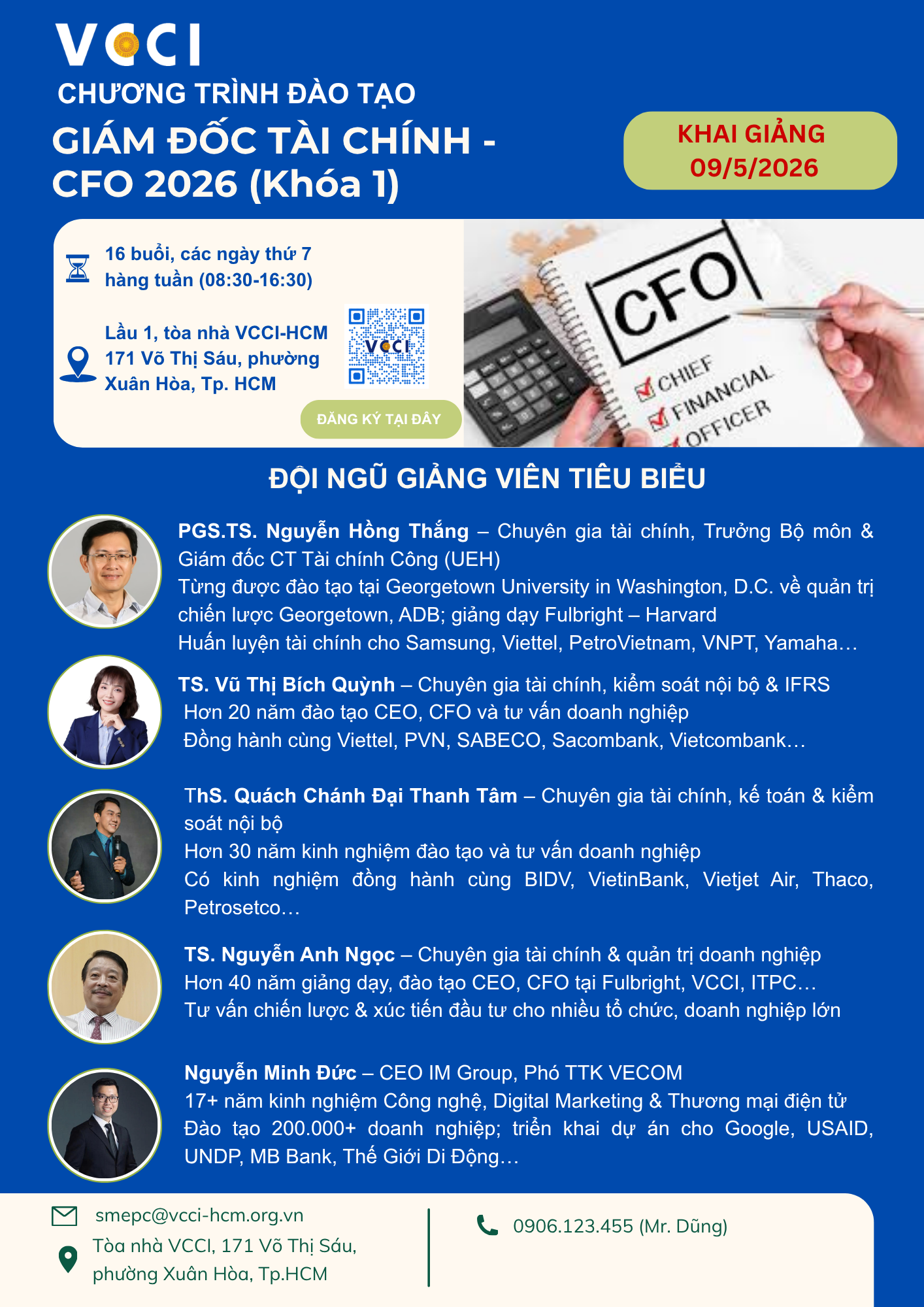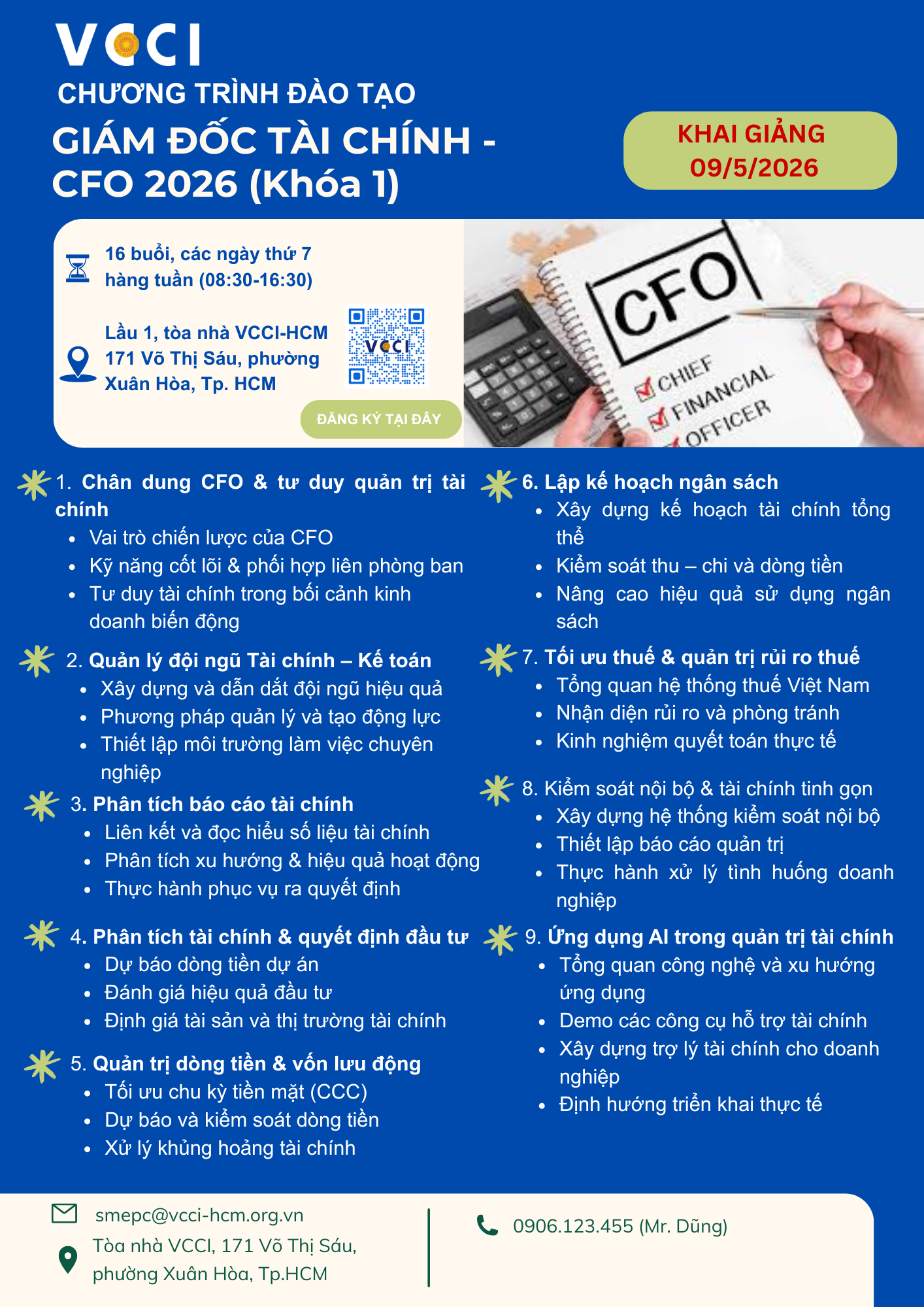 Vui lòng đăng ký tại https://bit.ly/ĐT_CFO_KHOA1_2026 trước ngày 07/5/2026.