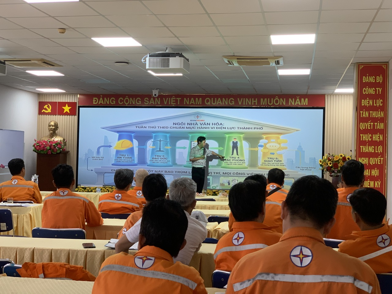 Một số hình ảnh về đạo tạo nội bộ (in-house) đã triển khai: “Bộ chuẩn mực hành vi EVNHCMC” tại đơn vị Tổng công ty Điện lực Thành phố Hồ Chí Minh