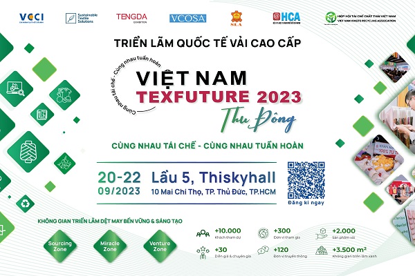 Tiếp nối thành công của Triển lãm Quốc tế Vải cao cấp Texfuture 2023 Xuân Hè với thông điệp “Dệt may Việt Nam Mạnh hơn – Thông minh hơn – Xanh hơn”, Texfuture Việt Nam 2023 – Mùa Thu Đông với chủ đề “Cùng nhau tái chế – Cùng nhau tuần hoàn” được trông đợi là nơi để hỗ trợ doanh nghiệp dệt may Việt Nam phát triển bền vững.