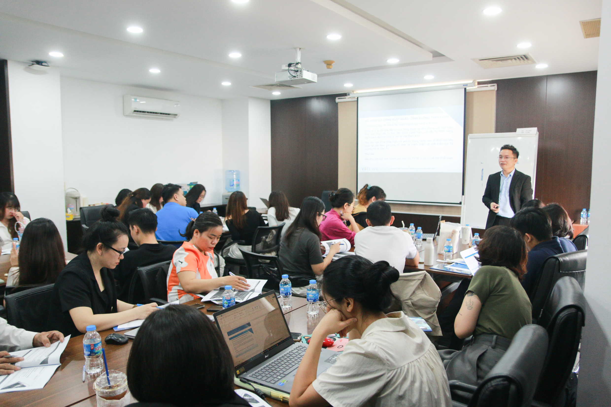 Khóa đào tạo không chỉ cung cấp kiến thức chuyên sâu cũng là không gian để học viên cùng chia sẻ, thảo luận các tình huống thực tiễn và kết nối trực tiếp với giảng viên, từ đó, giải đáp những vấn đề vướng mắc liên quan đến thuế và hợp đồng trong giao dịch ngoại thương của doanh nghiệp.